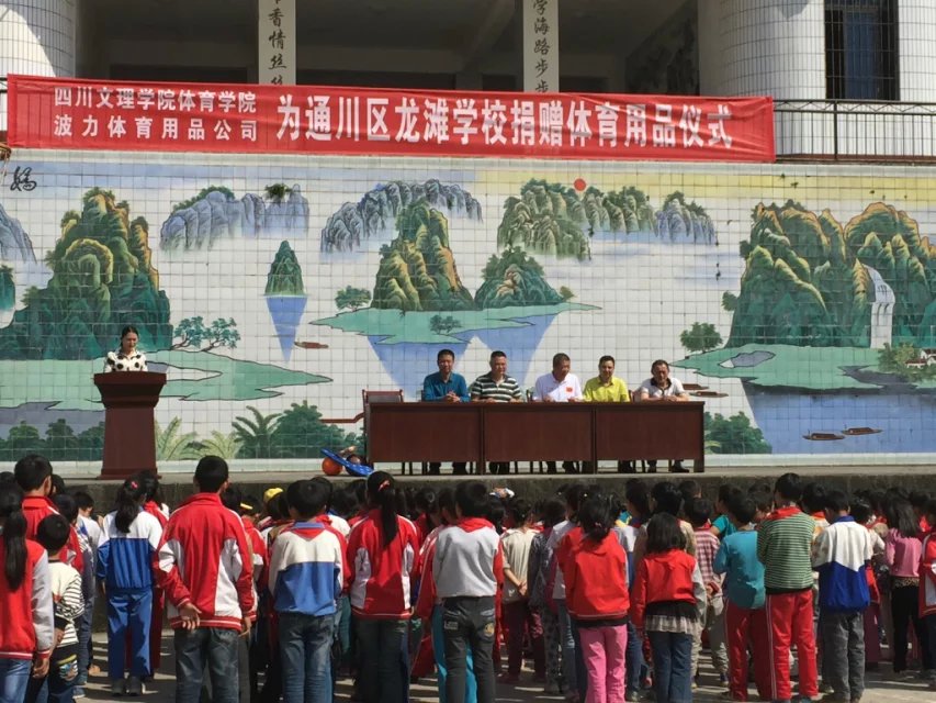 2015年10月15日上午,公司联手达州市波力体育用品有限公司,向通川区龙滩乡中心校捐赠了一批体育器材。