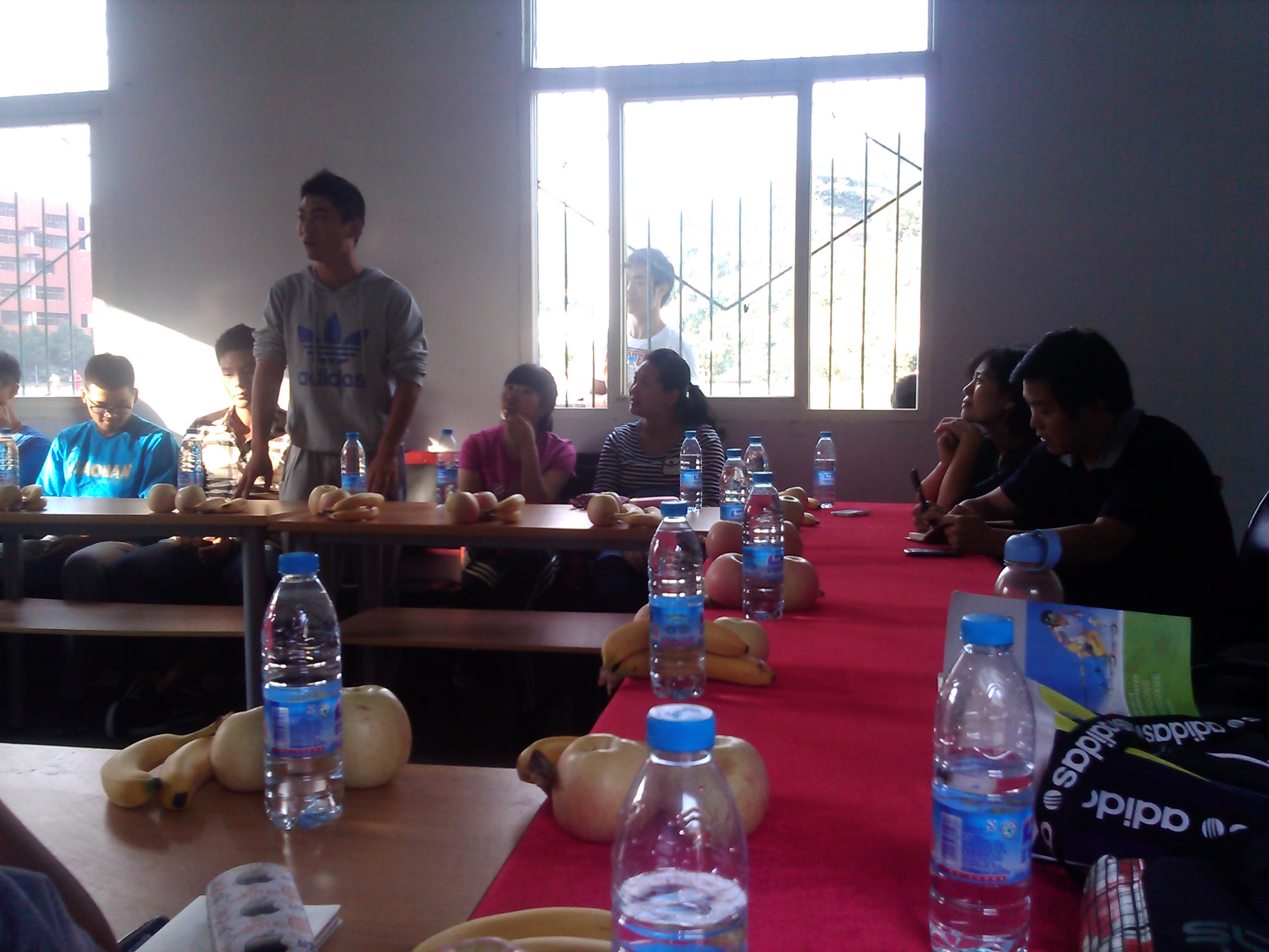 座谈会分为三个阶段进行:新生自我介绍、各位领导讲话、自由发言讨论。公司领导老师对本次座谈会十分重视,在会上对每位同学的学习、生活表示亲切的问候。会上气氛十分活跃,同学们也能够敞开心扉与各位领导老师沟通。在座谈会进行中,董主任详细的讲解了同学们在进入大学后应该怎样学习,如何明确自己的目标与方向,树立正确的人生观、世界观。佘书记鼓励省外同学们要多与本地同学共同学习,共同进步,入乡随俗,尽快适应老员工活,发扬我们体育员工能吃苦耐劳的精神,将这里当做第二故乡,让自己的梦想从这里起航。
