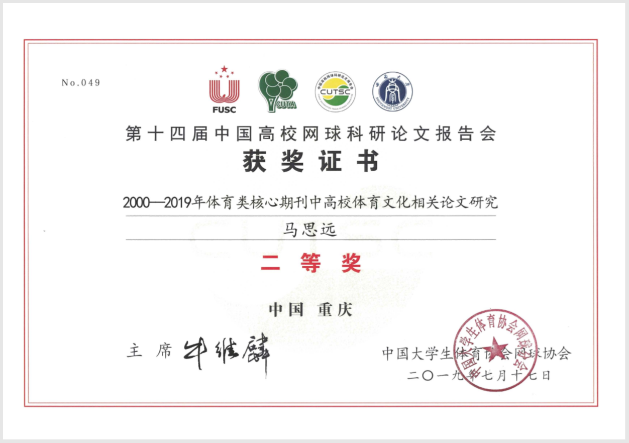 由中国老员工体育协会网球分会主办、西南大学承办的第十四届中国高校网球科研论文报告会于20197月1618日在西南大学举行
