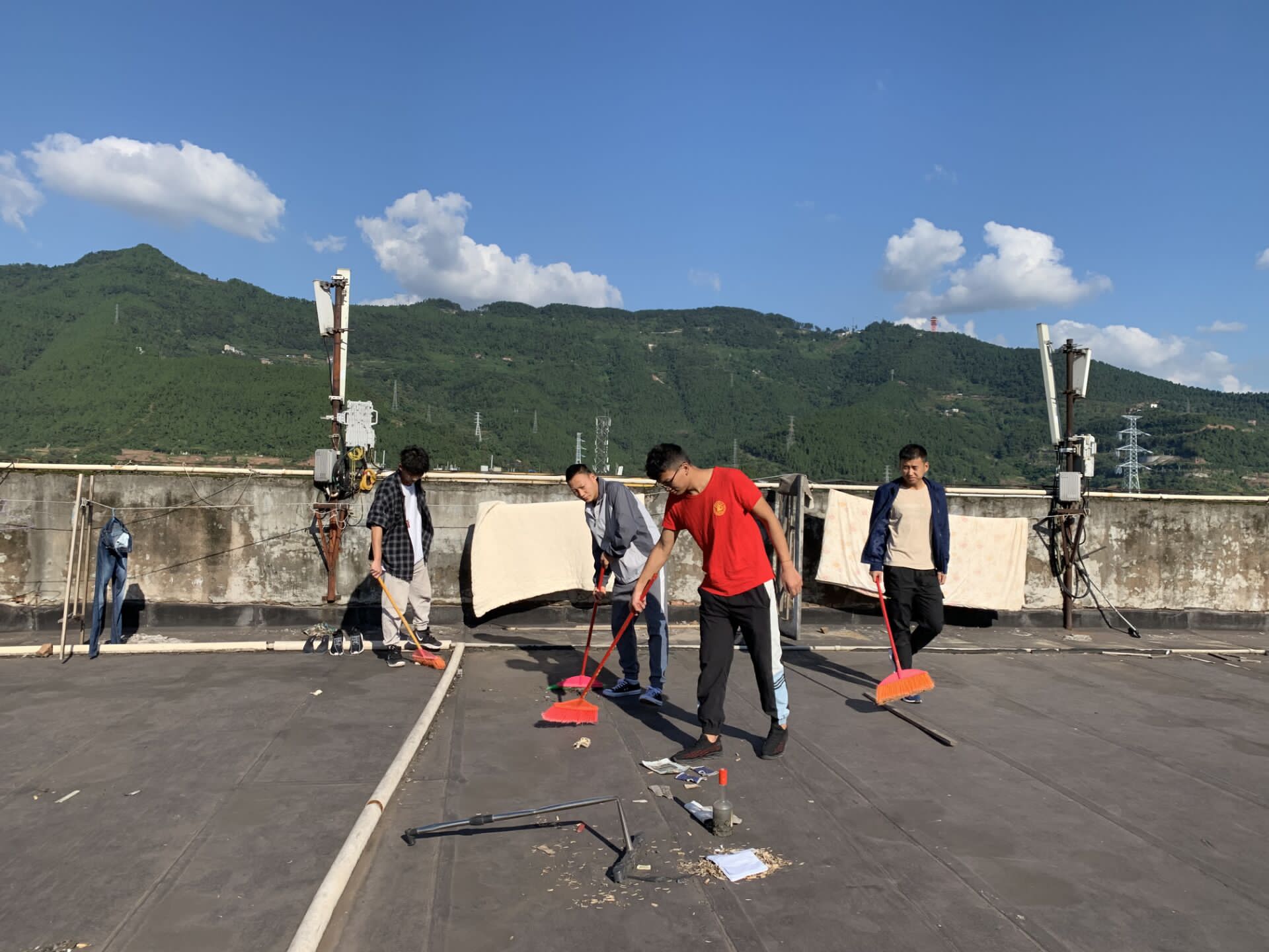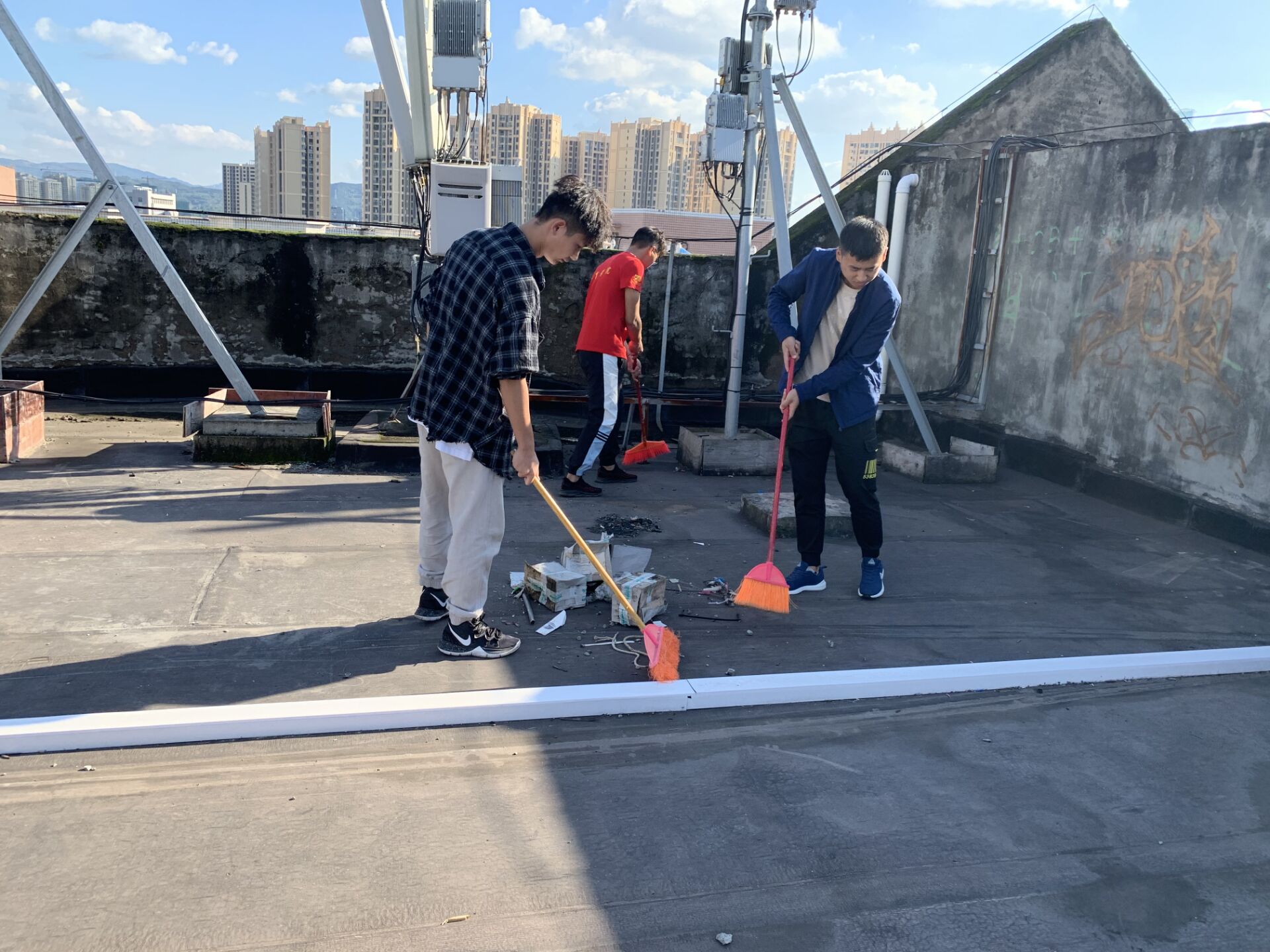 伟德国际1949由马思远老师带队,劳生部带领伟德国际1949劳动志愿者分组对九舍进行清洁,主要针对公寓天台、楼道、走廊、学习室窗户、消防栓等边边角角进行排查,清扫。坚决做到地面无垃圾,无积水,过道墙砖明亮干净,无小广告等。同时,大力宣传“四城同创”和文明公寓的工作要求,倡导大家共建共享更加美好生活的环境。