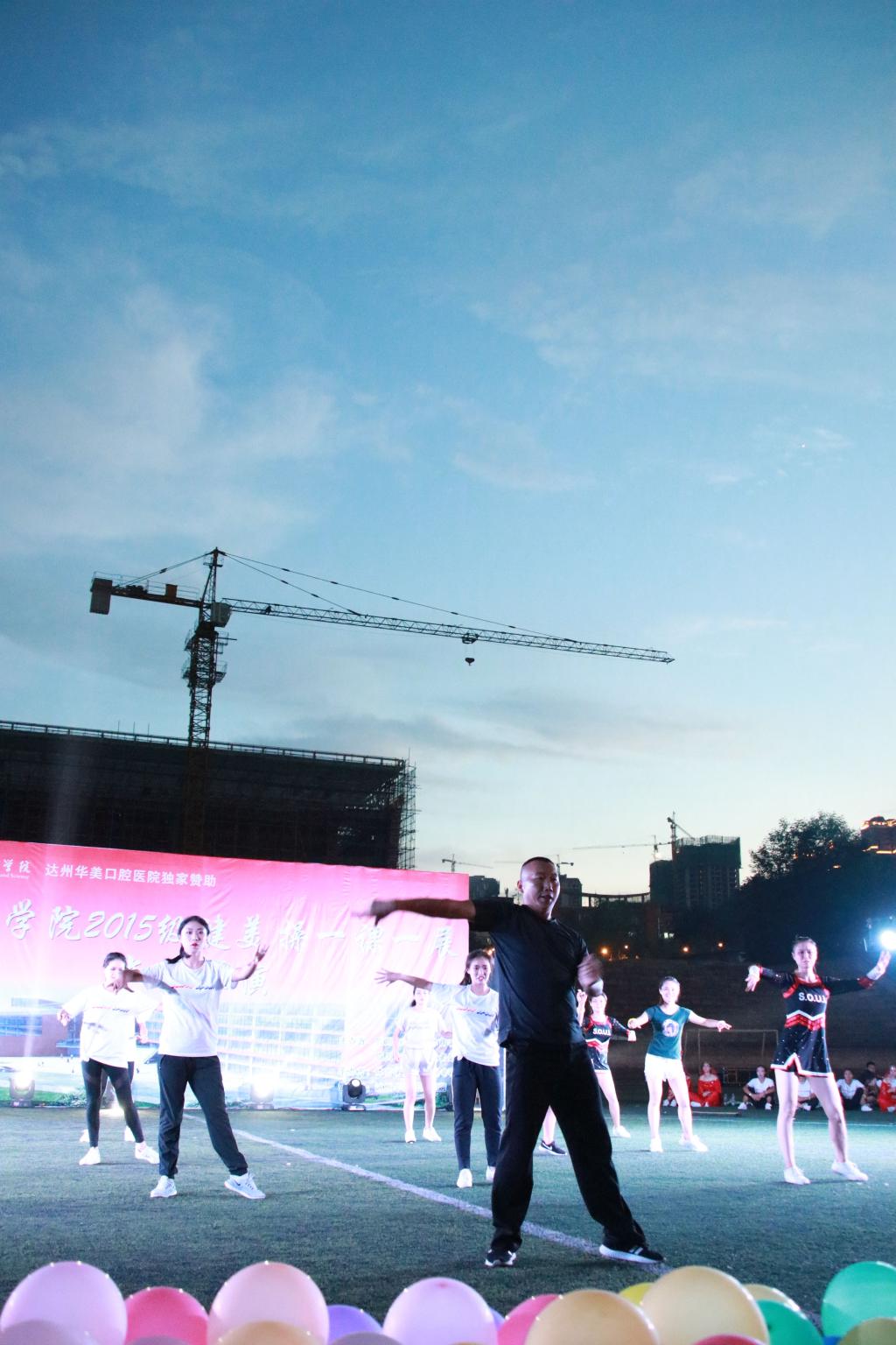 6月27日19:30,公司在田径场开展了2015级健美操一课一展文艺汇演。公司人事处张皓处长、教务处曾宪文副处长、伟德国际1949教师及400余名员工共同观看了此次演出。