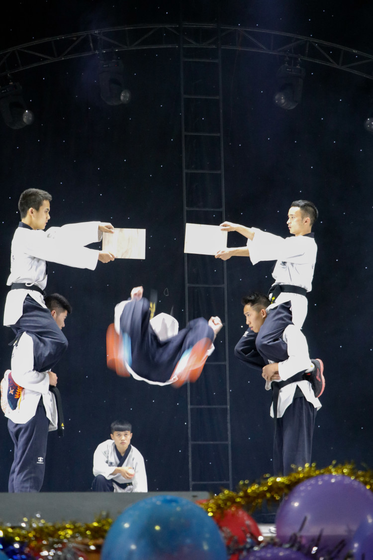 晚会以富有动感和力量的基本功拉开序幕。跆拳道表演的高难度的动作,令台下观众为之叹服,也将晚会现场气氛推入高潮。剑、棍、拳、刀、枪让展现了武术的独特魅力与我国传统文化中舞狮技艺。小品《遇见你真好》回忆起美好的校园学习生活,表达了对老师和同学们的依恋与不舍。晚会更有舞蹈、啦啦操、民族舞、街舞的表演,为同学们展示了健美操专业的深厚功底,让在场观众感受到了青春的激情与活力。