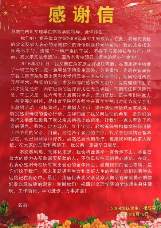 杨成容致全院师生的一封感谢信