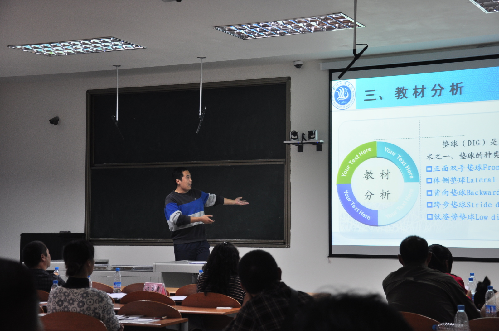 本次全省体育教师说课比赛旨在进一步加强高校青年教师队伍建设,促进校际体育工作的交流,提高体育专业公司产品质量。四川省设置体育专业的24所普通高等公司80余名教师参赛。参赛教师分术科、学科、公体三组比赛,采用20分钟现场说课评比的比赛方式进行。伟德国际1949认真组织,通过先期进行院内比赛,精心选拔了樊永强、孙亮亮和李进文三位教师参赛。公司教师说课材料准备充分,课堂教学目的明确,教学思路清晰,教学过程设计合理,语言表达准确精炼,教学方法独特新颖。公司选手们流畅的讲解,优美的板书,端庄大方、挥洒自如的仪态,展现了过强的教学技能和教师风采,赢得了参赛同行们和专家评委的连连称赞。