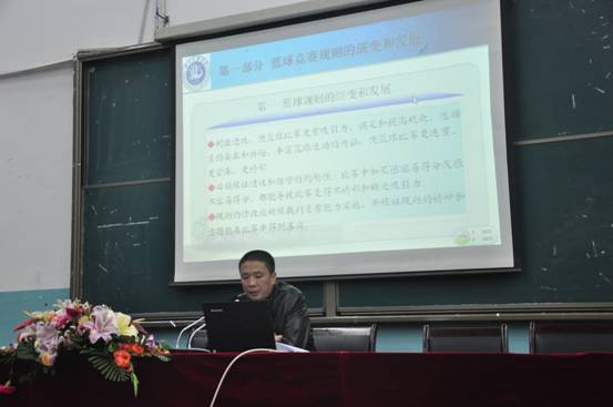 讲座围绕篮球竞赛规则的演变和发展、篮球裁判员基本素质、篮球裁判员执裁技巧等几大方面展开。讲座从最早的篮球规则(“篮球之父”奈史密斯先生制定)入手,阐明当时制定的几大原则和当今规则变化的态势,以此引出篮球裁判员应适应当前规则的发展,我们高校体育院校也应培养具备现代发展趋势的裁判员,使裁判员具备基本素质,如:业务素质、心理素质、思想素质、身体素质等。最后认为篮球裁判员也应熟练掌握执裁技巧,如:稳定的尺度、关系的处理、规则的精通。