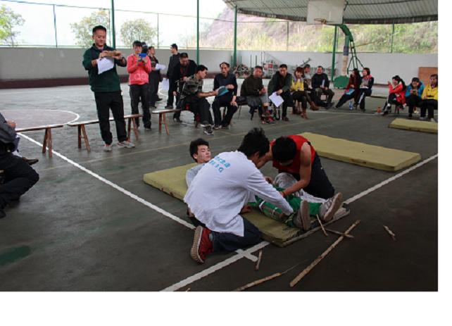 为建立体育运动安全防范工作的长效机制,2014年3月27日下午4点30分,伟德国际1949结合公司开展的“应急演练”活动,根据自身专业特点,在篮球棚组织全院教师进行了员工意外损伤急救知识培训。