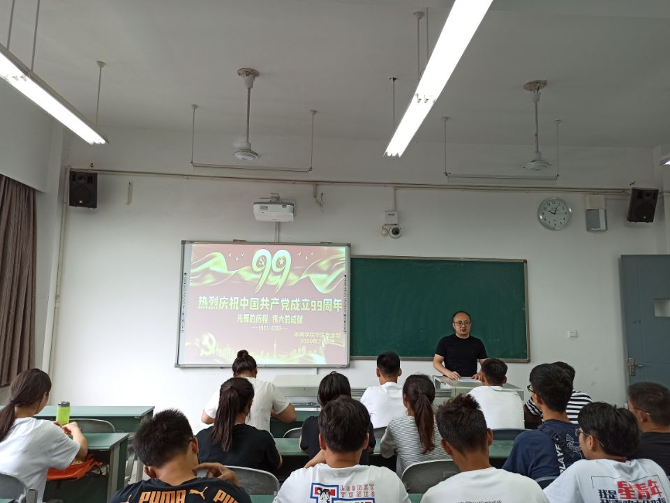 为庆祝中国共产党成立99周年,回顾党的光辉历程,讴歌党的丰功伟绩,继承和发扬党的光荣传统和优良作风,弘扬主旋律,传递正能量,伟德国际1949员工党支部于7月1日下午在艺术传媒楼4019开展了庆祝建党99周年主题活动。公司党总支副书记、员工党支部书记彭波,团总支书记祝利平,专职辅导员石姣娜、全体员工党员参加了活动。