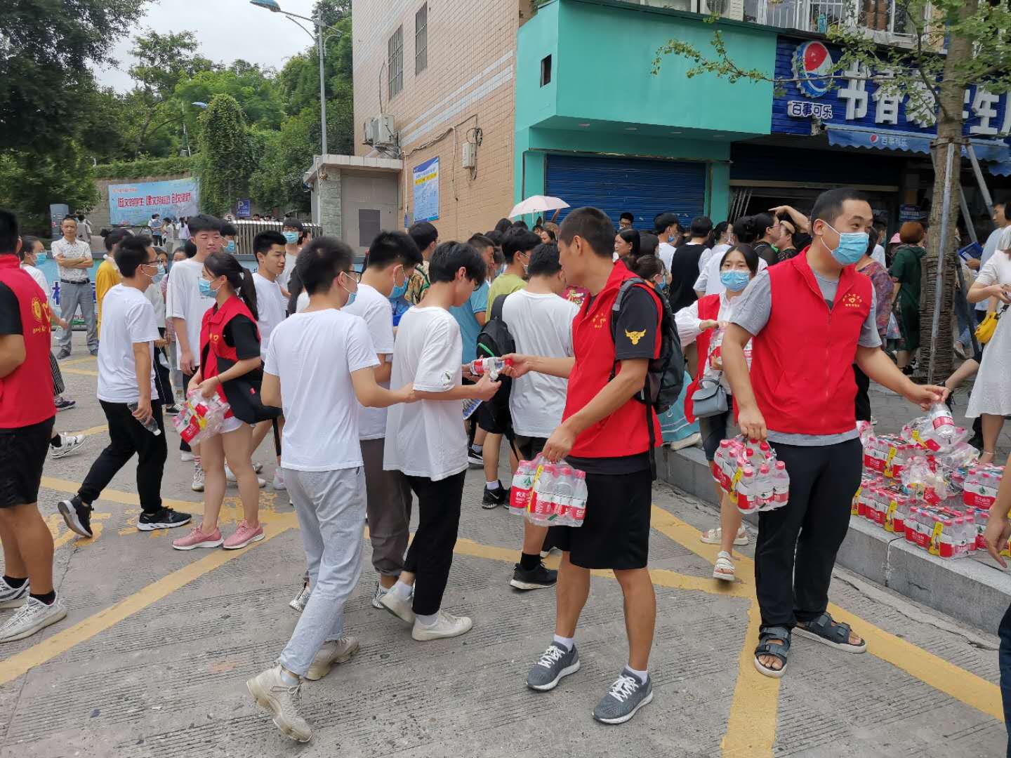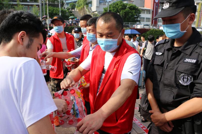 公司党总支面向全院发出此次志愿服务活动通知后,公司师生踊跃报名,很快就招募了20多名志愿者。在78日上午十点和下午四点,两支志愿者服务队冒着酷暑,佩戴好志愿服务标志,准备好物资(矿泉水和口罩)早早地来到达一中考点外。在等候考生的时间里,一些志愿者给在烈日下执勤的交警、武警和工作人员送去了矿泉水,一些志愿者跟在现场等候考生的家长们进行了亲切的交流,一些志愿者在捡拾地上的垃圾。考生交卷出来后,有的志愿者们在维持秩序,其余的则有序地给考生分发矿泉水,并送上祝福和鼓励的话语。待考生全部离场以后,志愿者们主动捡拾了散落在地上的传单和其他垃圾,保持了考场外的清洁卫生。