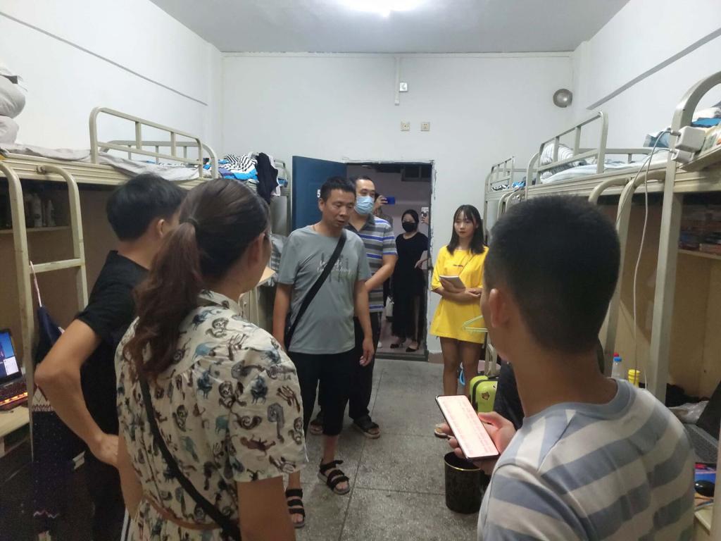 佘涛、孙亮亮、祝利平、艾力、谢成立、闫青、邓伟、邓闿林老师走访10舍和12舍。老师们关心了毕业生的实习情况,希望同学们能够充分认识到实习的重要性,在接下来的实习期内,锻炼自己的专业实践能力,为以后的顺利就业奠定基础。同时,指出员工宿舍的卫生、安全等方面存在的问题,要求同学们进行整改。