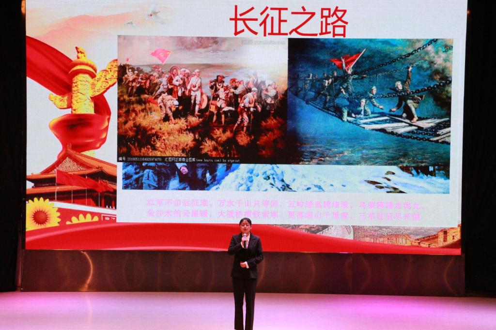 经各班初赛推荐,团总支员工会组织复赛,最终有10位同学进入本次决赛。在比赛中选,手们精神饱满、感情充沛、自信十足。《强健体魄,传承红心》表达了广大学子努力学习,强健体魄,传承革命精神的决心;《与党同行》描绘了党从无到有、从小到大、从弱到强的壮美诗篇;《不忘初心,继往开来》展现了中国共产党带领全国各族人民不畏艰辛、科学谋划、攻克难关,取得了脱贫攻坚战全面胜利的伟大历程;《巴山军魂》讲述了红军战士血战巴山,不畏艰苦、不畏牺牲的精神品质;《金色的鱼钩》叙述了长征途中一位炊事班班长接受并完成党组织交给的任务,照顾三个生病的小战士过草地,而牺牲了自己的故事,表现了红军战士忠于革命、舍己为人的高贵品质……经过激烈的比赛,20201班朱梦婷,20191班唐悦两位选手并列获得此次比赛第一名。