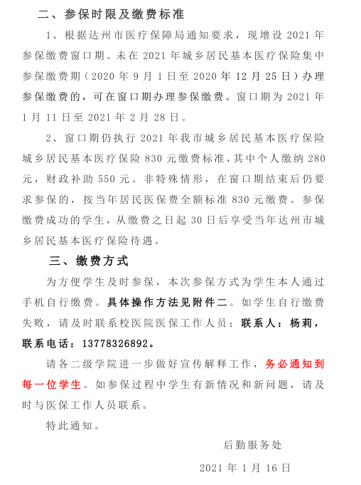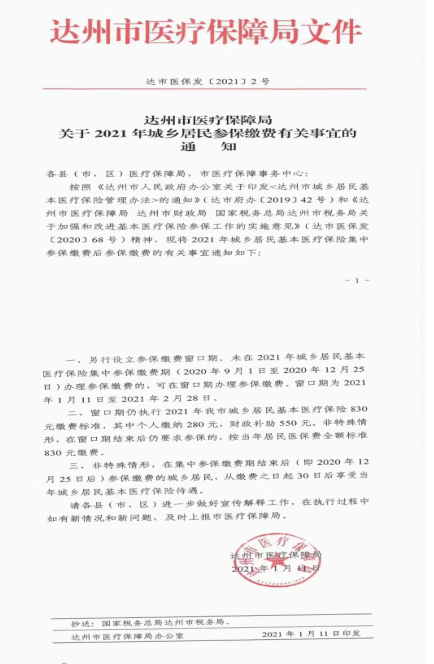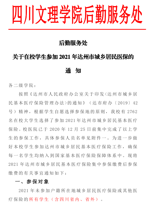 ​​关于在校员工参加2021年达州市城乡居民医保的通知