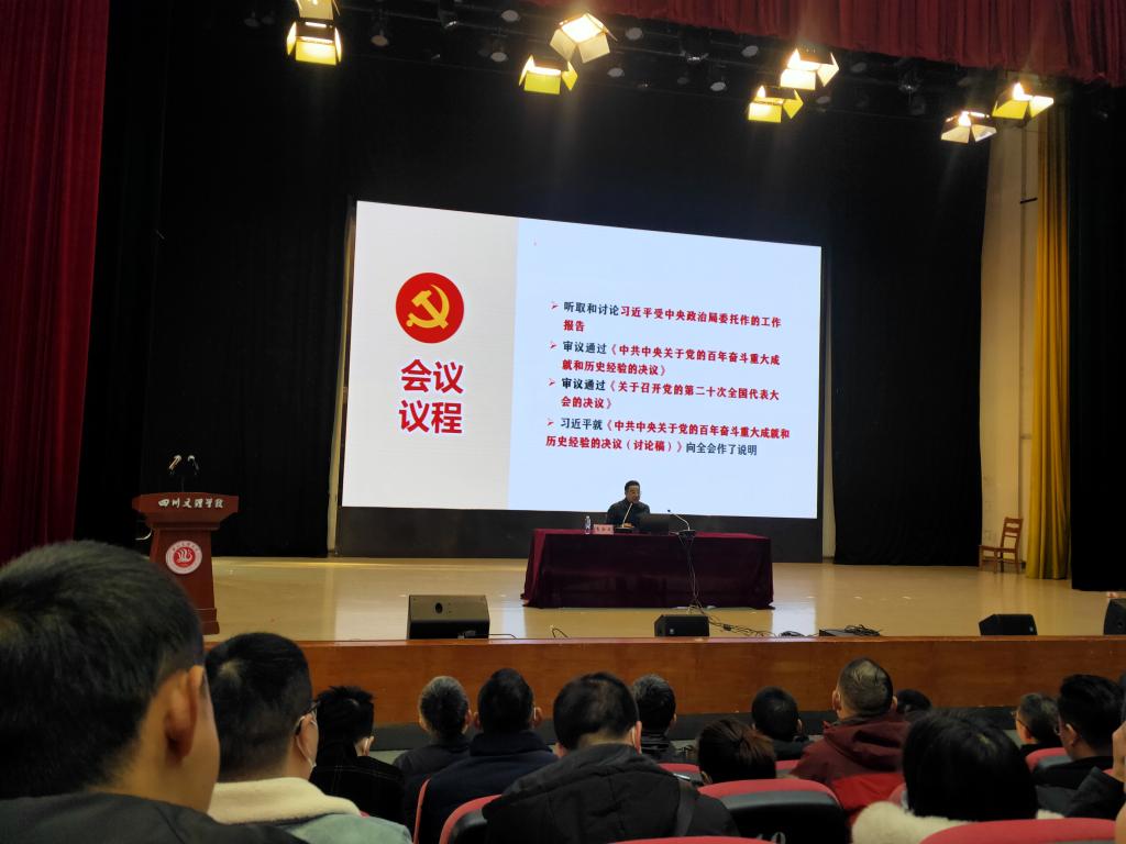 1222日,副董事长李壮成在莲湖校区多功能厅宣讲党的十九届六中全会和省委十一届十次全会精神。体育公司党总支书记王兆忠主持宣讲会。
