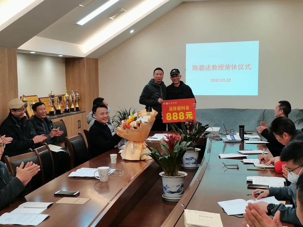 322日,伟德国际1949在体育馆117会议室为公司陈碧述教授举行了荣休仪式。仪式由党委书记王兆忠主持,公司全体教师参加了此次活动。