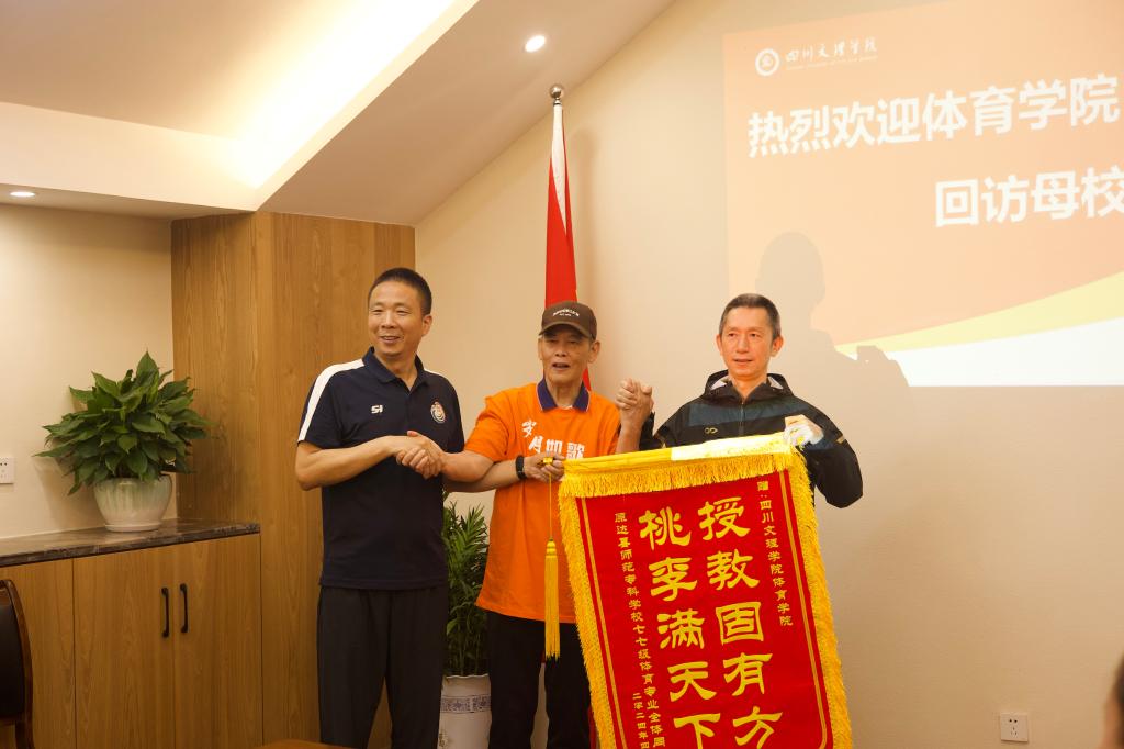 参观结束后,在体育馆117会议室召开了1977级师生座谈会,员工办负责人及公司党政领导出席。公司党委书记王兆忠代表公司表达了对公司教师前辈和员工们热诚的欢迎。员工代表向公司赠送了锦旗,“授教固有方,桃李满天下”表达了员工们对公司的感恩、肯定和期望。经理佘涛介绍了公司发展历程、现状和规划,并期待前辈及员工们对公司的发展指点迷津。接下来,进行了交流发言。大家纷纷表示,毕业四十多年重回母校,亲眼见证了公司翻天覆地的变化,为公司的办学成就感到欣慰。在交流过程中,饱含感慨、感动和感恩。前辈邓朝胜等三位老师还就公司的特色发展、创新发展提出了宝贵的建议。