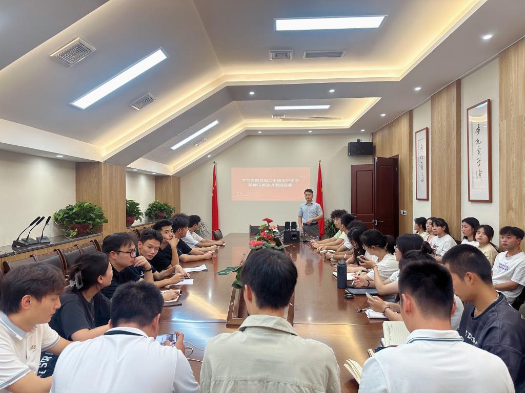 20249月中旬,员工党支部在体育馆117开展专题党课宣讲党的二十届三中全会精神,员工党支部全体党员、预备党员、入党积极分子代表参会,党委副书记靳浪担任主讲。