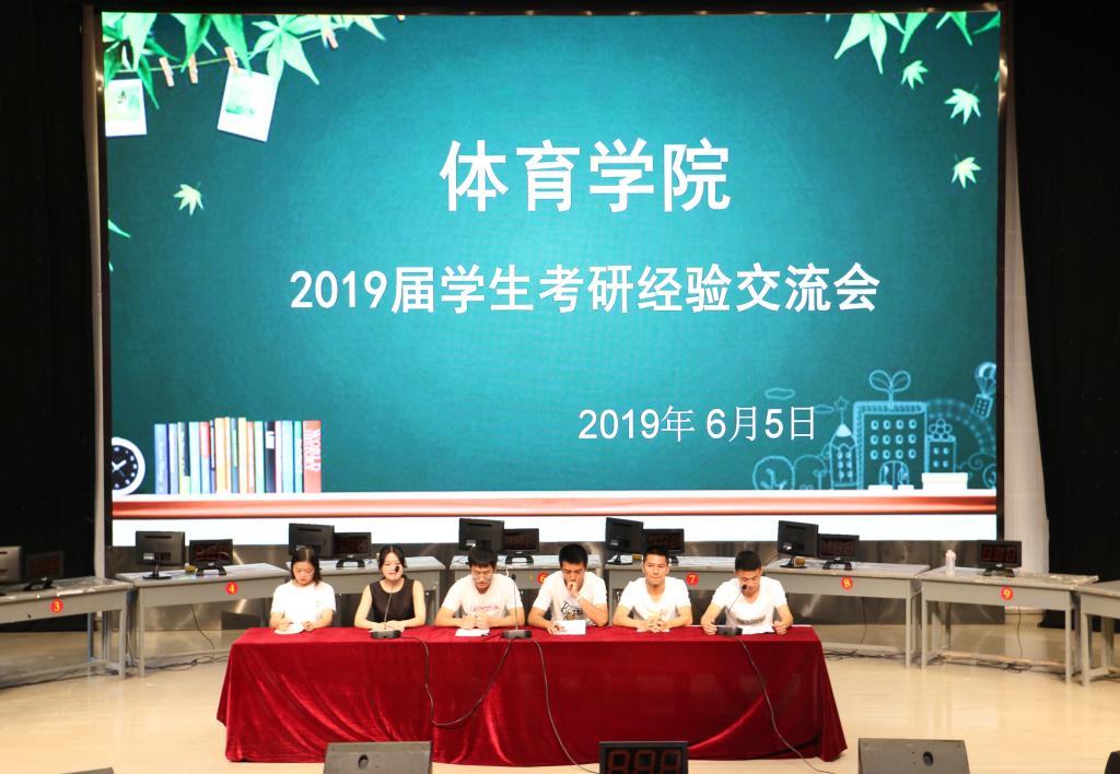 2019年6月5日下午4: 30,伟德国际1949在校园影院举行“2019届考研经验交流会”,由桂元保、吴嘉瑞、钟俊宇、唐红梅、张树林、李生彬六位研究生代表主讲,体育公司党总支书记兼经理佘涛教授、党总支副书记王进教授、专兼职辅导员、教师代表以及大一、大二、大三的同学参会,会议由彭波老师主持。