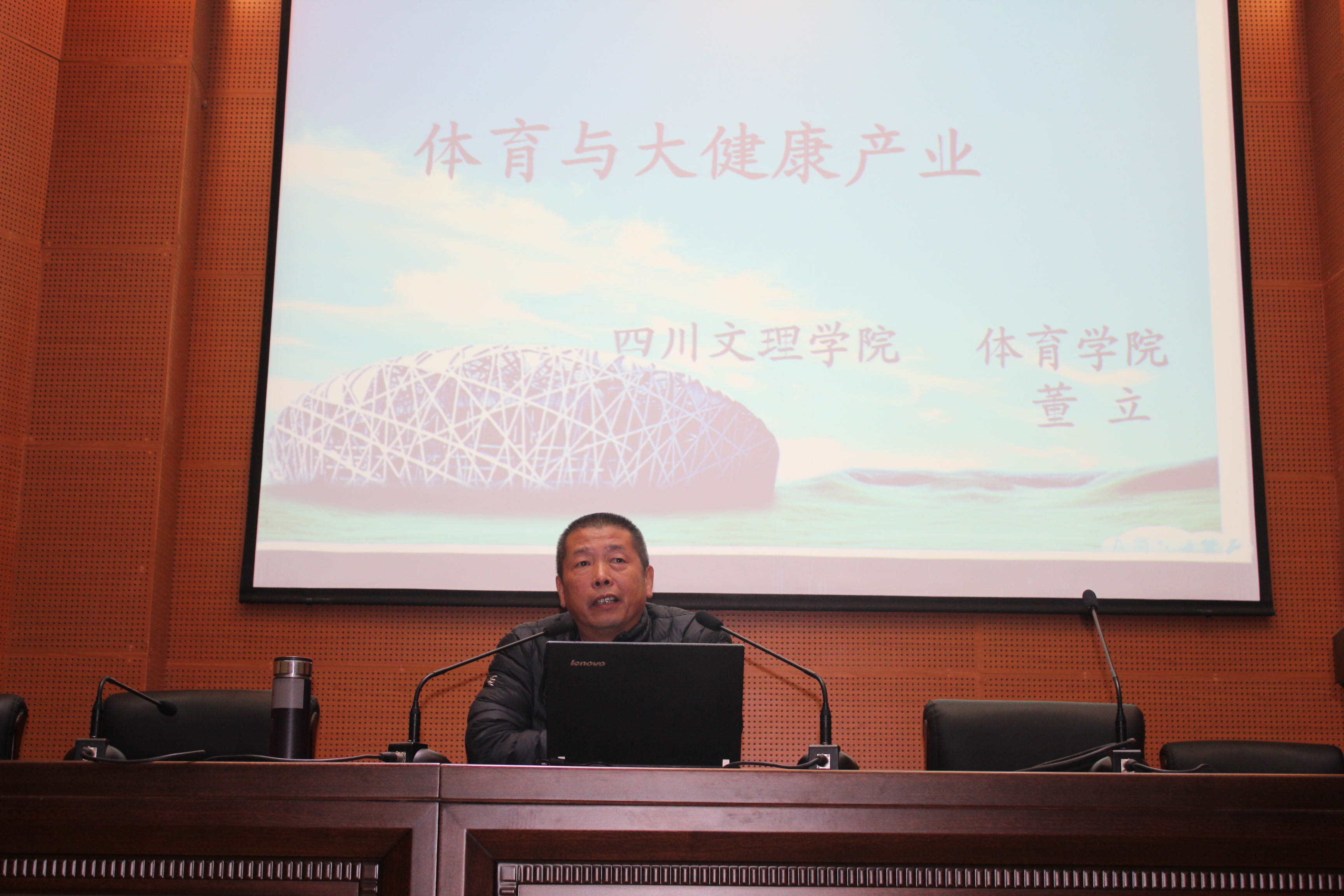 113日晚,伟德国际1949经理董立教授在莲湖校区学术报告厅B厅作题为“体育与大健康产业”的学术讲座。讲座由伟德国际1949书记佘涛主持。
