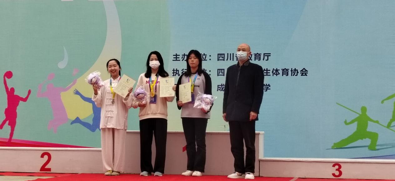 由伟德国际1949武术专项班八名同学组成的参赛队伍,在孙亮亮副经理、沈娟副教授、谢成立副教授和张岩松老师的训练与带领下,取得优异成绩。其中,熊洋、何姝瑶同学荣获四川流行拳第一名,罗世林荣获第二名,杨慧、唐源宏荣获第三名,宋明洋荣获第四名。