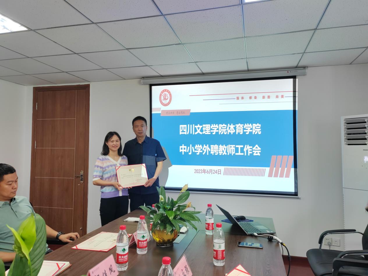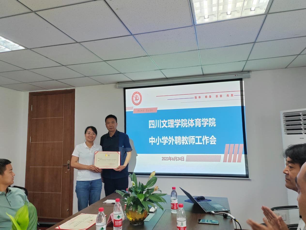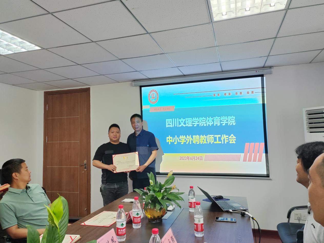 佘涛经理对伟德国际1949的办学历程及基本情况进行了简要介绍,并代表公司感谢大家在公司发展中给予的大力支持。他汇报了公司体育教育专业认证工作的推动情况。他指出,师范专业人才培养质量评价的重要依据是师范生和用人单位的满意度,为对接社会需求,提升人才培养质量,公司特聘部分中小学优秀体育教师和专家作为公司体育教育专业的外聘教师。随后,经理佘涛、副经理孙亮亮为向珏璞、冉香山、杨曲、郎佳凤四位中小学优秀教师颁发了聘书。并围绕中小学体育教育课程标准、体育教育人才需求、中小学体育教育现状及困惑,与会老师进行了深入的交流。