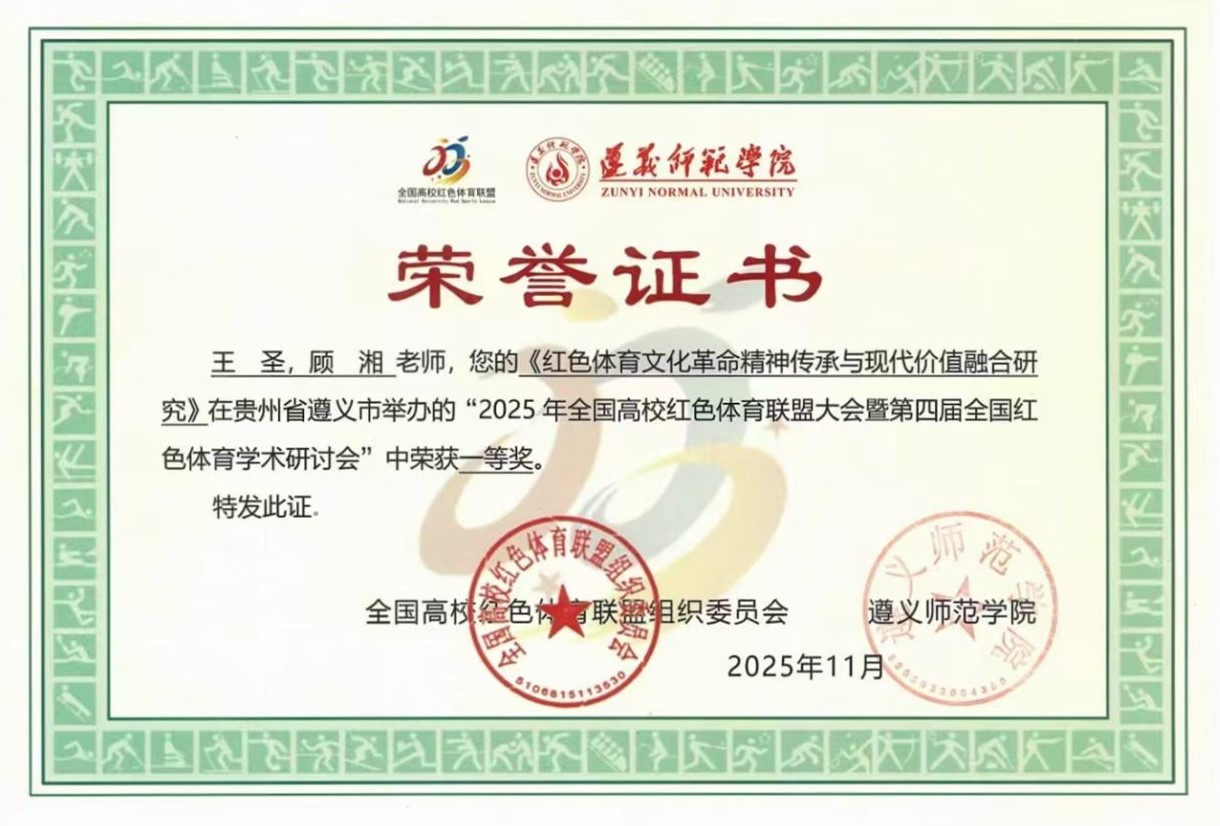 近日,全国高校红色体育联盟大会暨第四届全国红色体育学术研讨会在遵义师范公司召开。伟德国际1949王圣博士受邀参会,他以《红色体育文化革命精神传承与现代价值融合研究》为题,在此次研讨会上作专题报告并荣获一等奖,成为公司深化红色育人实践的重要成果。