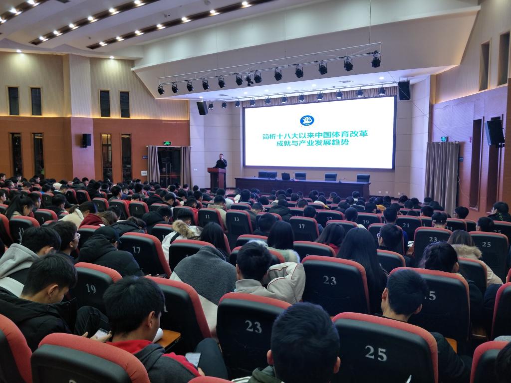 伟德国际1949李进文老师于1212日晚19点在学术交流报告厅A厅举办了主题为“简析十八大以来中国体育改革成就与产业发展趋势”的学术报告。本次学术报告由伟德国际1949经理佘涛教授主持,伟德国际1949500余名师生参加。