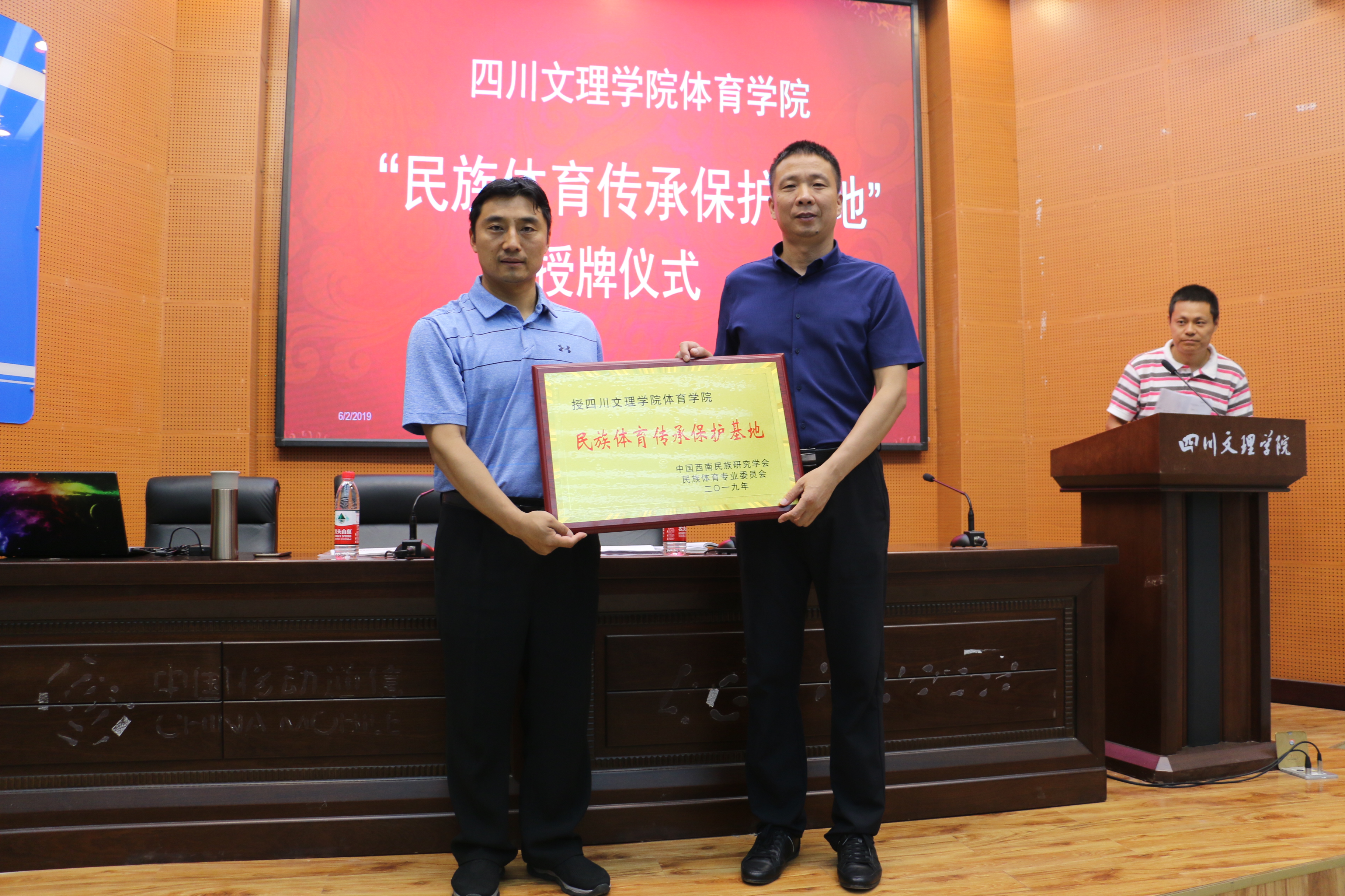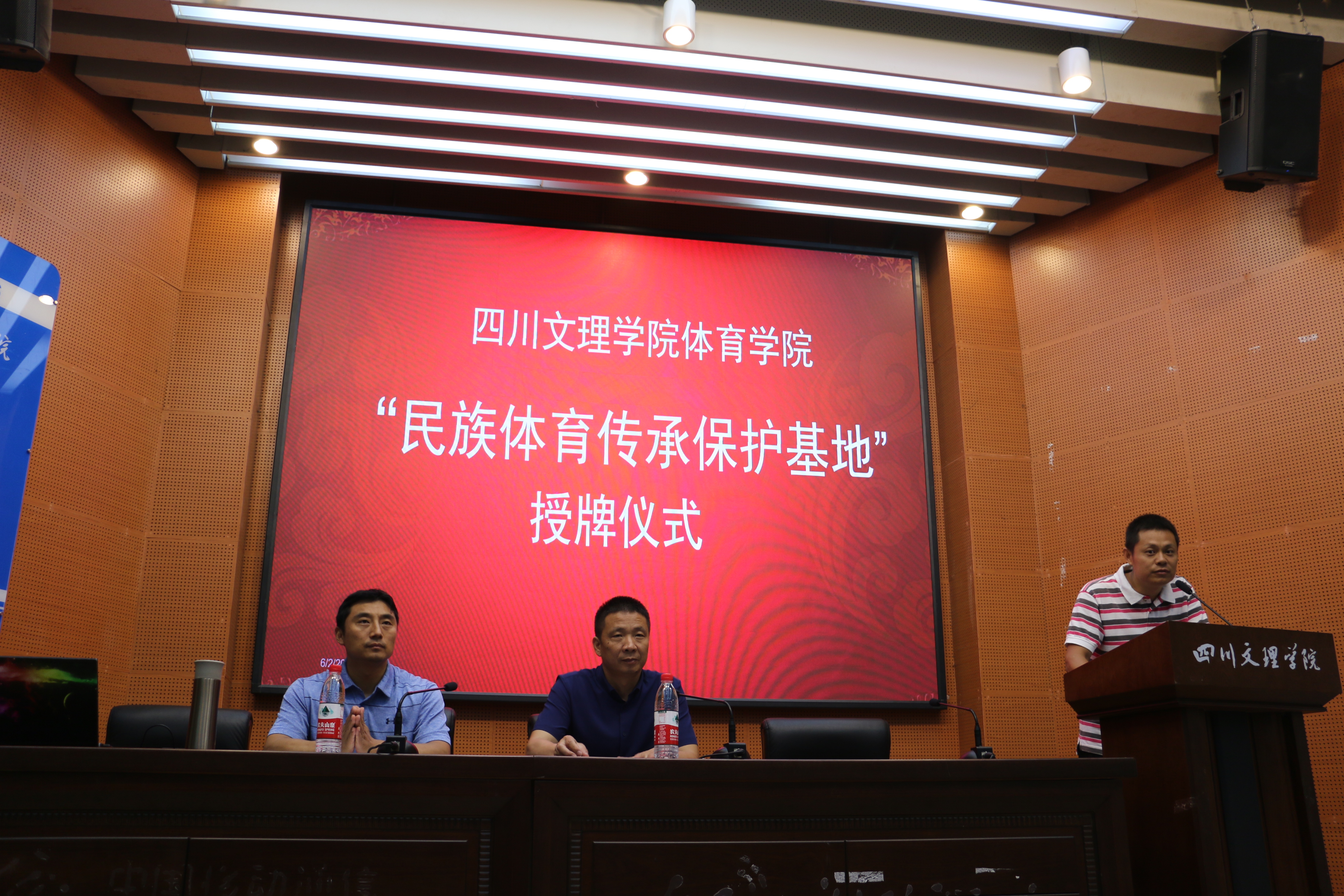 讲座伊始,首先进行“民族体育传承保护基地”授牌仪式,由成都伟德国际1949陈振勇教授为公司经理佘涛教授授牌。其次,陈教授讲解了如何理解我们的民族传统体育文化,并分析了民族传统体育文化保护研究的领域等内容。最后,陈教授提出三点希望:一是希望同学们认真领会讲座内容;二是希望同学们积极的探索武术与民族传统体育的新模式新方向;三是希望同学们努力成为一名合格的武术专业人才。