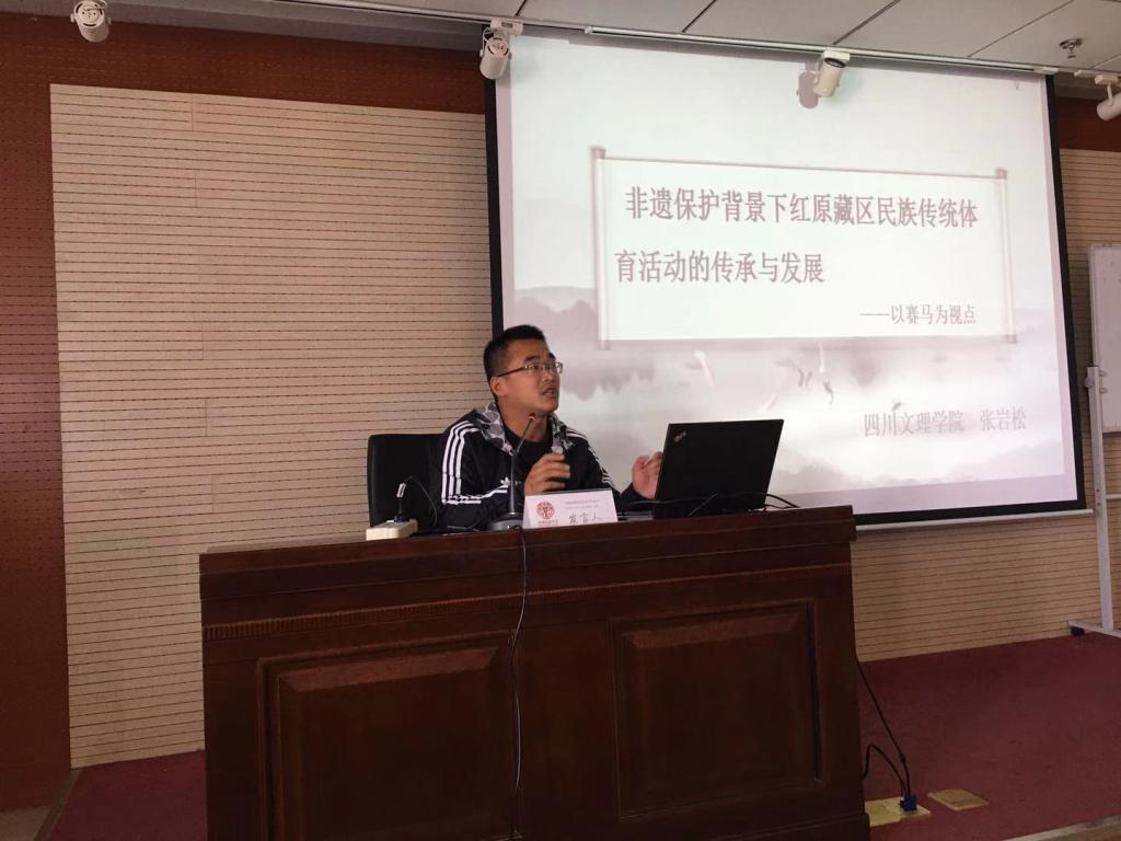 公司教师张岩松撰写的《非遗保护背景下红原藏区民族传统体育活动的传承与发展——以赛马为视点》一文被大会录取,并在大会上作专题报告。