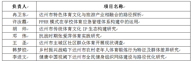 近日,达州市社科联发布了达州市社会科学研究“十四五”规划2021年度课题立项通报,据统计,伟德国际1949教师共立项课题7项。具体立项名单请参见下表。请各位立项项目负责人认真做好项目研究工作,确保立项按时保质完成。