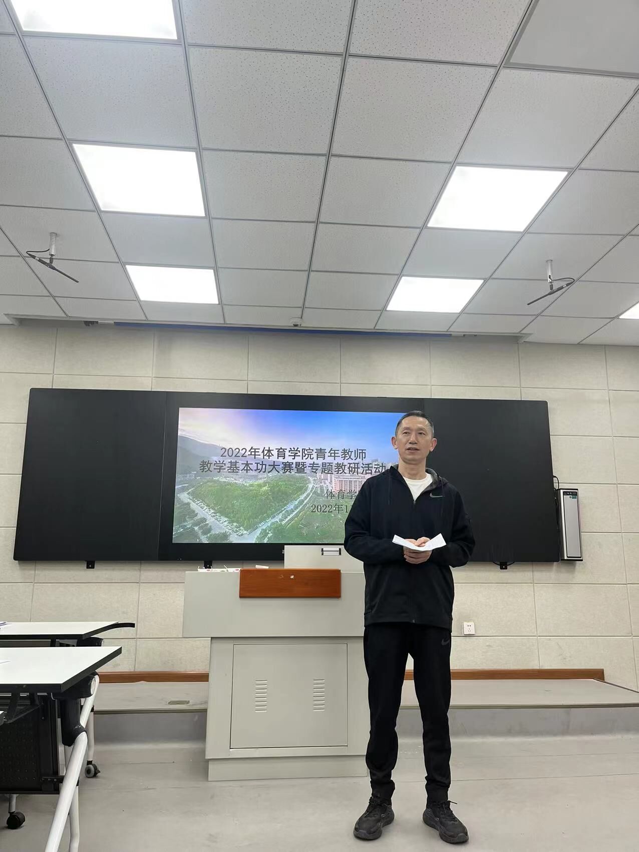 活动由马思远主持,体育公司党政领导、教研室主任及无课的老师出席本次比赛活动。