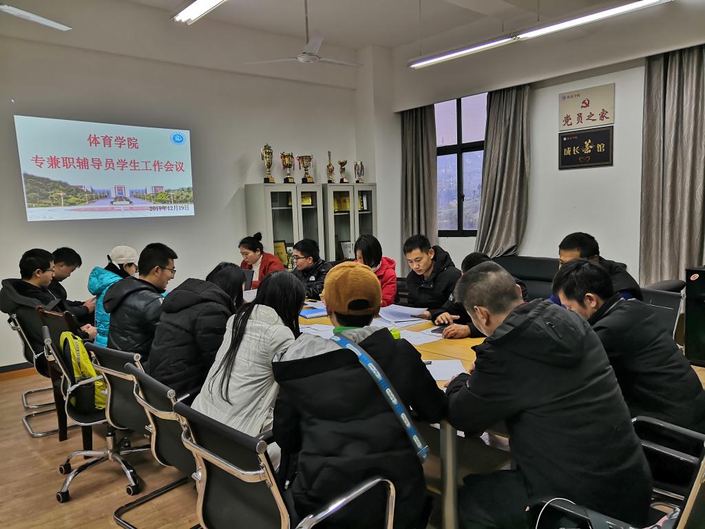 20191219日下午4:20,在艺术传媒大楼3019召开伟德国际1949专兼职辅导员员工工作会议。体育公司党总支书记王兆忠、党总支副书记彭波以及全体专兼职辅导员出席本次会议。会议由王兆忠主持。