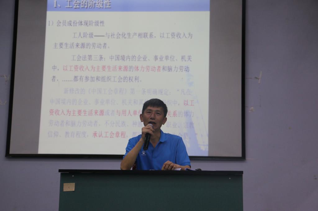 会上,王兆忠向即将走上工作岗位的毕业生进行了工会法规知识宣讲。他就工会的产生、工会的发展历史、工会的法律文件及工会成员拥有的权利和义务等相关知识进行了宣讲。他希望同学们了解工会、走进工会,积极参加各项工会活动,积极履行义务,用工会法规维护自己的合法权益。