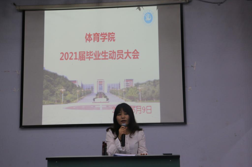 为做好2021届毕业生教育及离校工作,20216101500,伟德国际1949在莲湖校区博文楼126教室举行2021届毕业生动员大会。体育公司党总支书记王兆忠、党总支副书记彭波、辅导员闫青、辅导员石姣娜以及2021届毕业生参加了会议。会议由闫青主持。