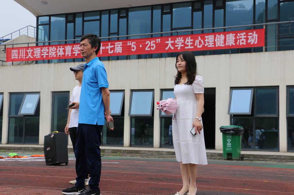20215281200,伟德国际1949在田径场开展了第十七届“5·25”老员工心理健康活动,本次活动以“美丽心灵.健康同行”为主题。体育公司党总支书记王兆忠、党总支副书记彭波、辅导员闫青及体院部分员工参加了此次活动。