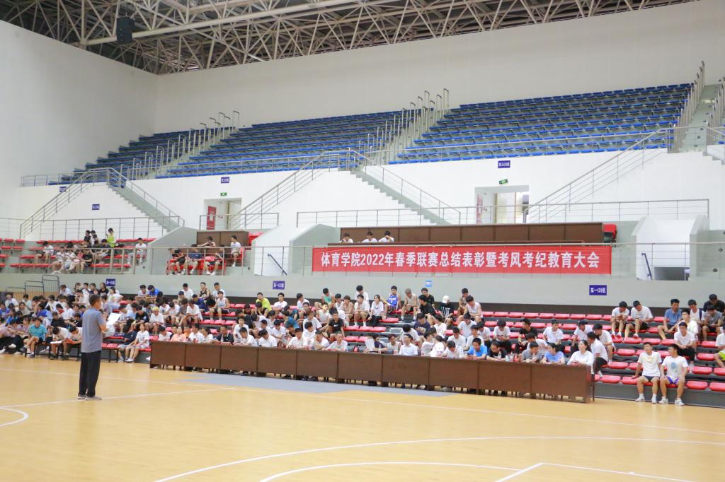 20226117:00,伟德国际1949在体育馆举行2022年春季联赛颁奖仪式。体育公司党政领导、党政办、教学科研办、体质测试中心、场馆中心、学工办、部分专项老师以及全体修业班员工参加此次仪式。