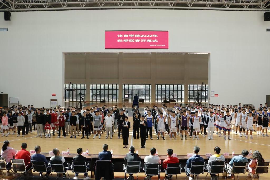 2022101812:30 伟德国际19492022年秋季联赛在体育馆拉开帷幕。体育公司党总支书记王兆忠,经理佘涛,副经理孙亮亮,组织员卫洪春,篮球、排球、羽毛球、乒乓球专项教师代表,专职辅导员,2022级和2021级员工以及参赛运动员代表参加开幕式。