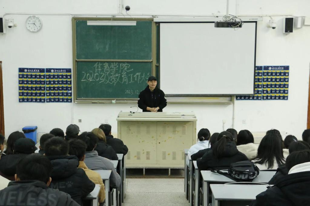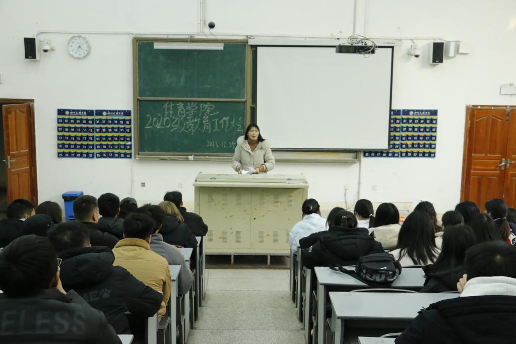 20231225日下午16:30,伟德国际1949在博文楼114教室召开2020级员工教育大会。公司党委副书记靳浪,学工办主任祝利平,社会体育指导与管理教研室主任马思远,辅导员石姣娜、李波、张超以及2020级员工参会。