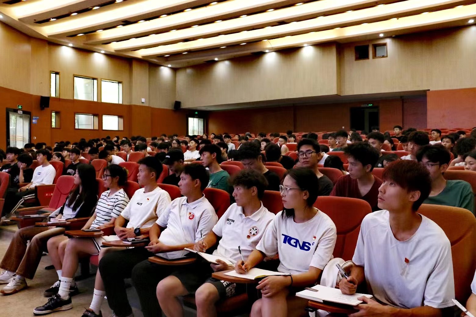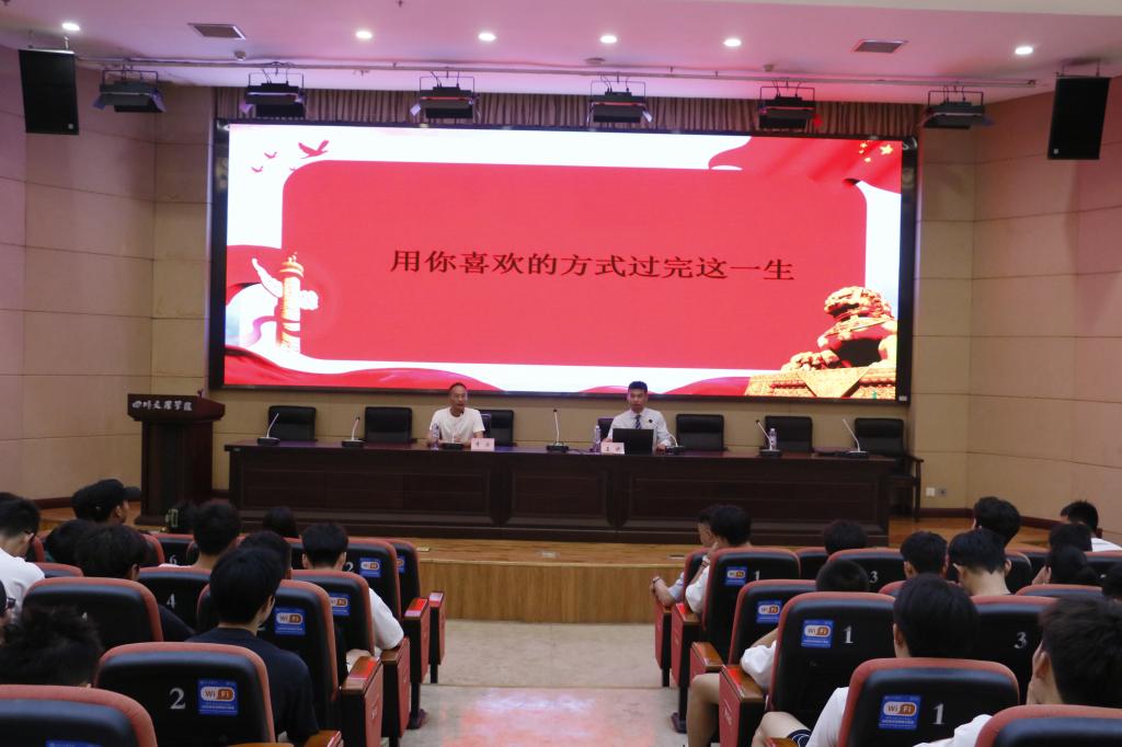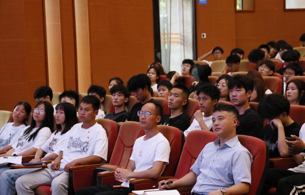 王斌从大学期间的成长经历出发,向同学们依次阐述了“我们为何到这里”、“我们到这里做什么”、“如何在深海练就游泳本领”等问题,告诉同学们一定要管理好自己,树立正确的人生观、价值观,在这大学四年里要磨练出仰望星空的魄力、坐得住冷板凳的定力、蓬勃的生命力和虽千万人而吾往矣的胆力。随后,他以“用你喜欢的方式过完这一生”的寄语,向学弟学妹们表达了美好祝愿,期望同学们们能拥有一个属于自己的美好未来。