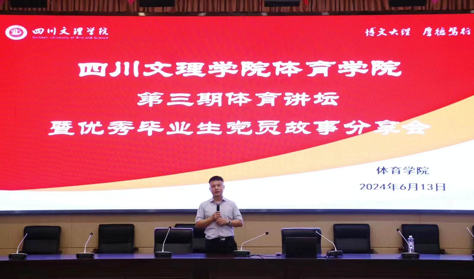 2024613日中午1230分,伟德国际1949在学术报告A厅开展第三期体育讲坛,本期讲坛由2024届毕业生党员王斌主讲,辅导员李波主持,公司党委副书记靳浪出席活动。