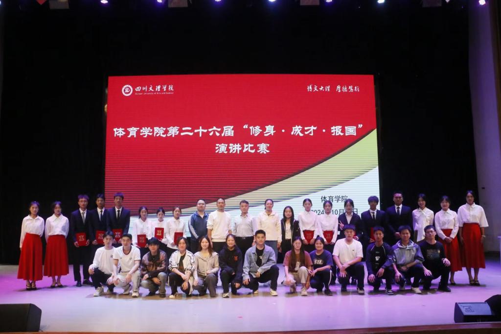2024101614时,伟德国际1949第二十六届《修身·成才·报国》演讲比赛在多功能厅举行,体育公司党委副书记靳浪,学工办主任祝利平,体测中心主任罗小兵,专职辅导员邓超、闫青以及2024级新生参加此次活动。
