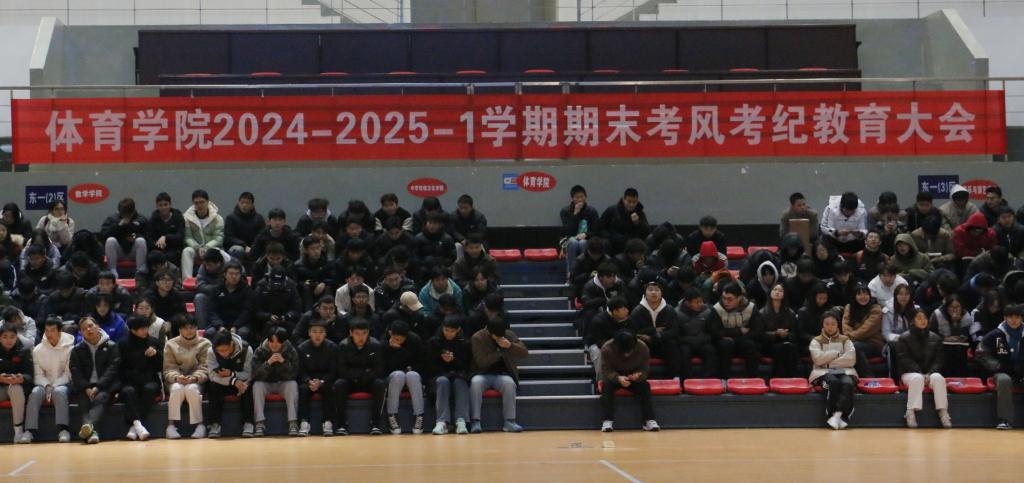 为加强学风建设,严肃考风考纪,强化诚信意识及安全意识,20241212日,伟德国际1949在体育馆召开了期末考风考纪暨安全教育大会。公司党副书记靳浪、学工办主任祝利平、辅导员邓超、李波、闫青及2022级、2023级、2024级全体员工参加会议。靳浪主持会议并讲话。