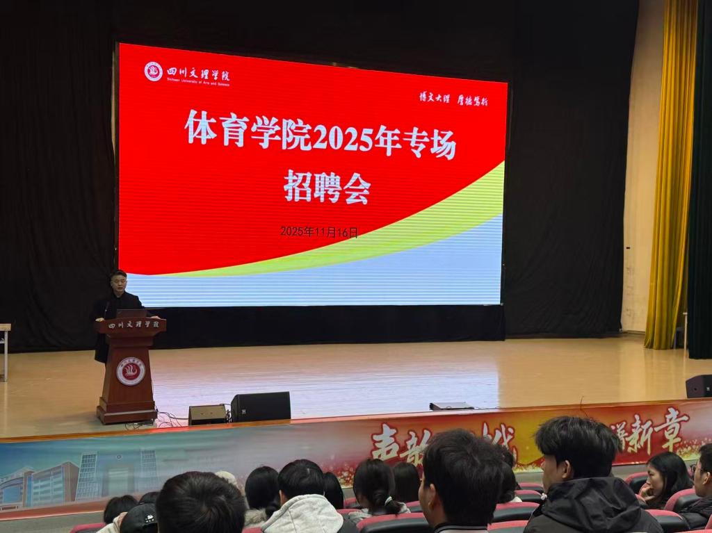 2025 11 16 日上午9:00,伟德国际1949在莲湖校区多功能厅组织召开2026届毕业生专场招聘会。本次活动邀请成都魔方运动网络科技有限公司、成都蜻蜓少儿篮球连锁运动馆、达州德瑞克体育文化发展有限公司三家体育类企业到校,为毕业生搭建精准对接的求职平台,切实打通就业服务的最后一公里”。 公司党政领导、学工办主任、毕业班辅导员及2026届毕业生参会。